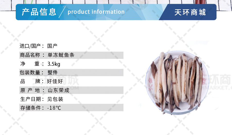 商品名称:【好佳好】单冻鱿鱼条 3.5kg