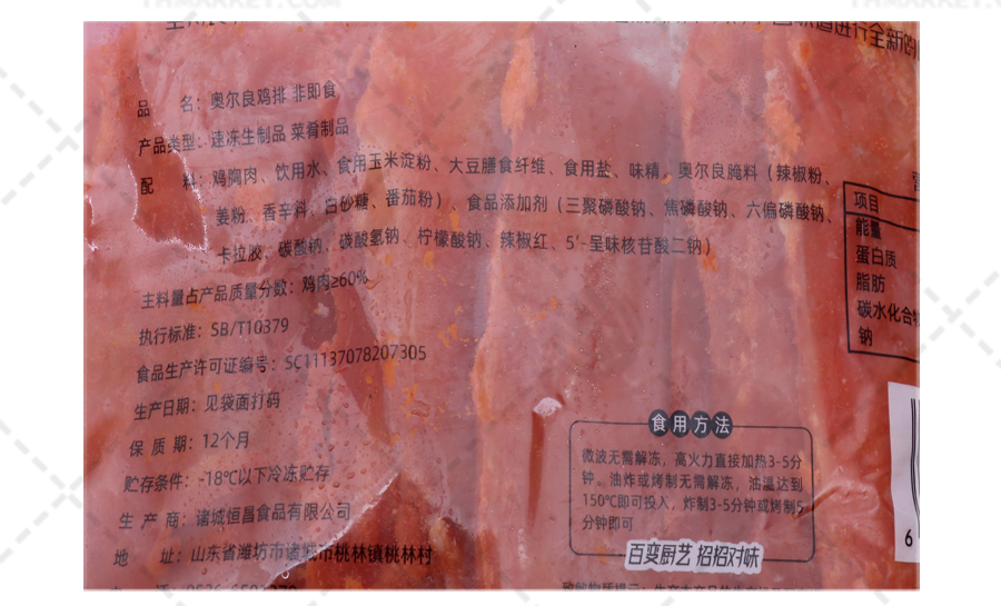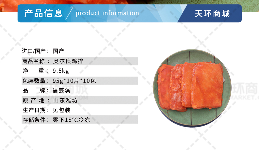 商品名称:【福云溪】奥尔良鸡排 95g*10片*10包 9.5kg