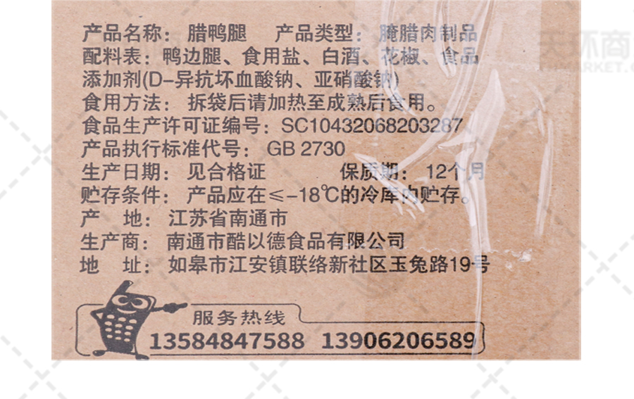 商品名称:【酷以德】腊鸭腿 约18个左右 5kg