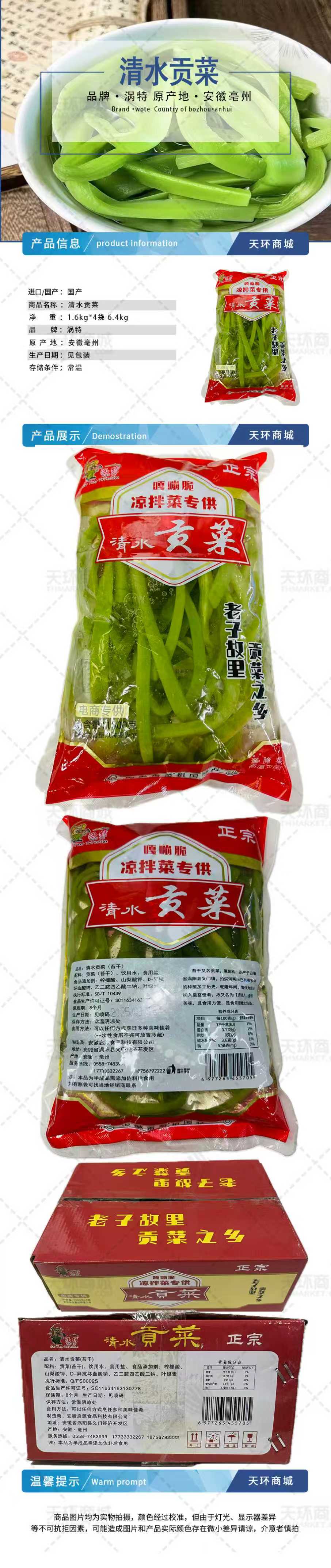 商品名称:【涡特】清水贡菜 1.6kg*4袋 6.4kg