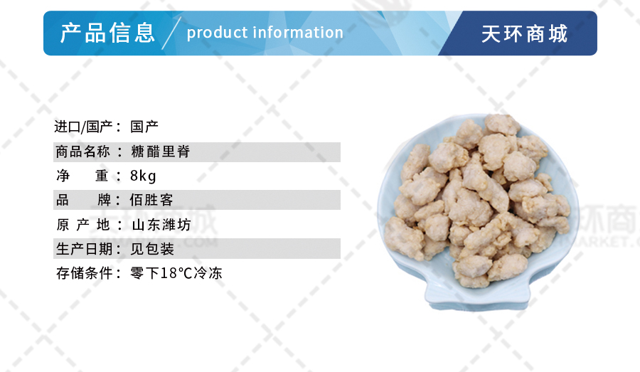 商品名称:【佰胜客】糖醋里脊 800g*10包 8kg