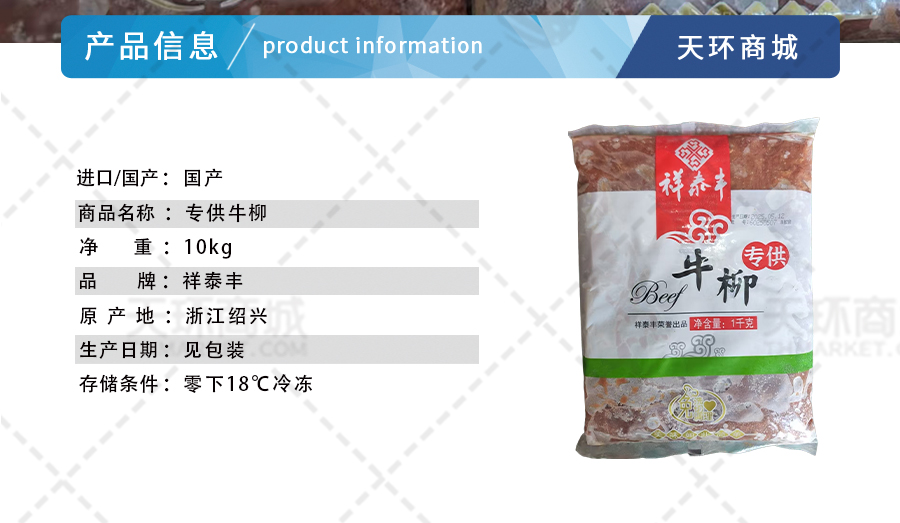 商品名称:【祥泰丰】专供牛柳 1kg*10包 10kg