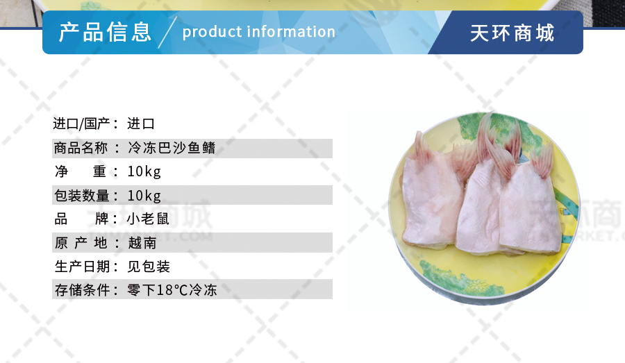 商品名称:【小老鼠】 冷冻巴沙鱼鳍/巴沙鱼翅 10kg